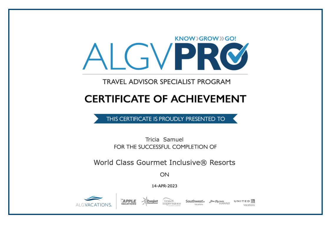 Completion of Haven Riviera Cancun’s Preferred Agent Course.